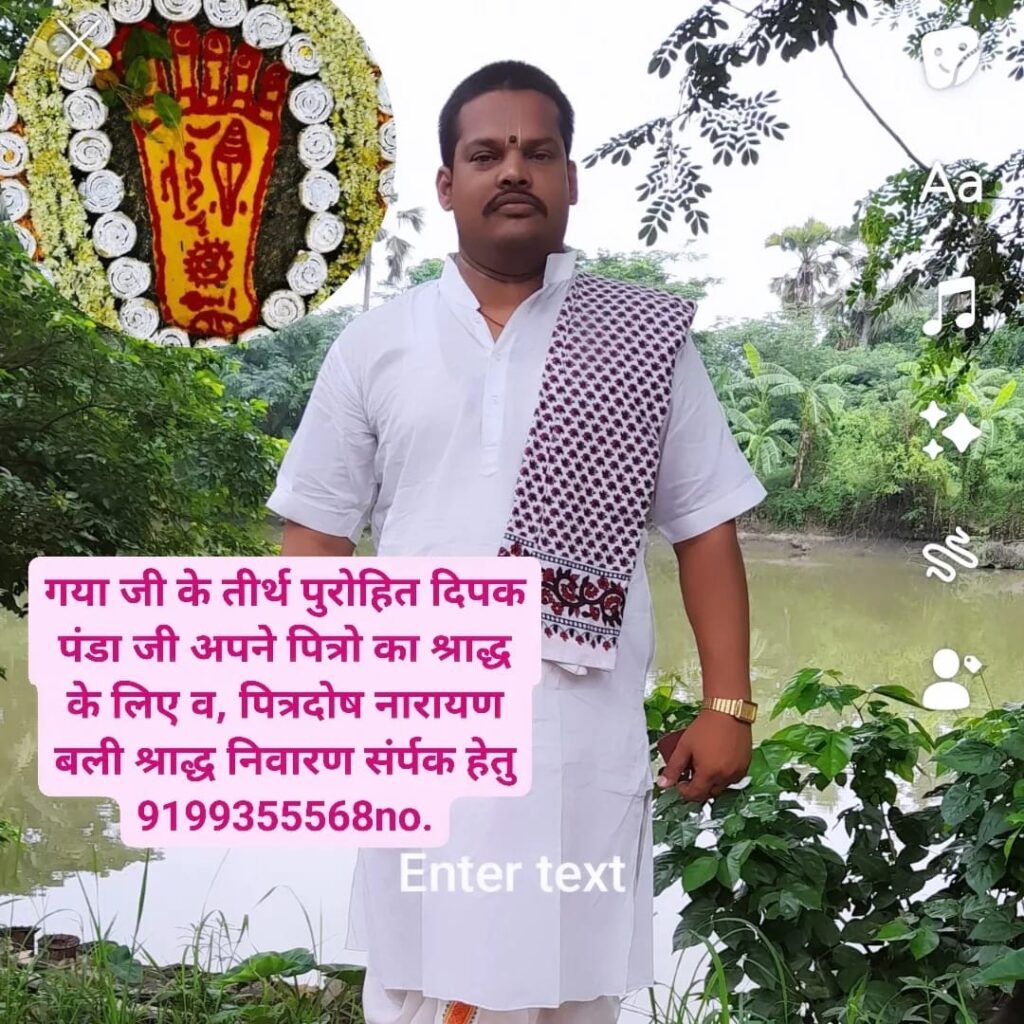 গয়া জি তীর্থ পরোহিত দীপক পান্ডা গোষ্ঠ য়ার শ্রাদ্ধ এবং পিত্রিদোস নারায়ণ বলি শ্রাদ্ধ (শ্রাদ্ধ করানোর জন্য যোগাযোগ ক রে আসবেন )গয়া আসার আগে ফোন এ যোগাযোগ করে আসবেন। গোয়ার রেল ওয়ে স্টেশনে দালাল থেকে সাবধান কলকাতা ভবন ..। বিষ্ণুপথ থানা র সামনে। দক্ষিণ দরজা । Dipak panda Ji Contact number:- 9199355568